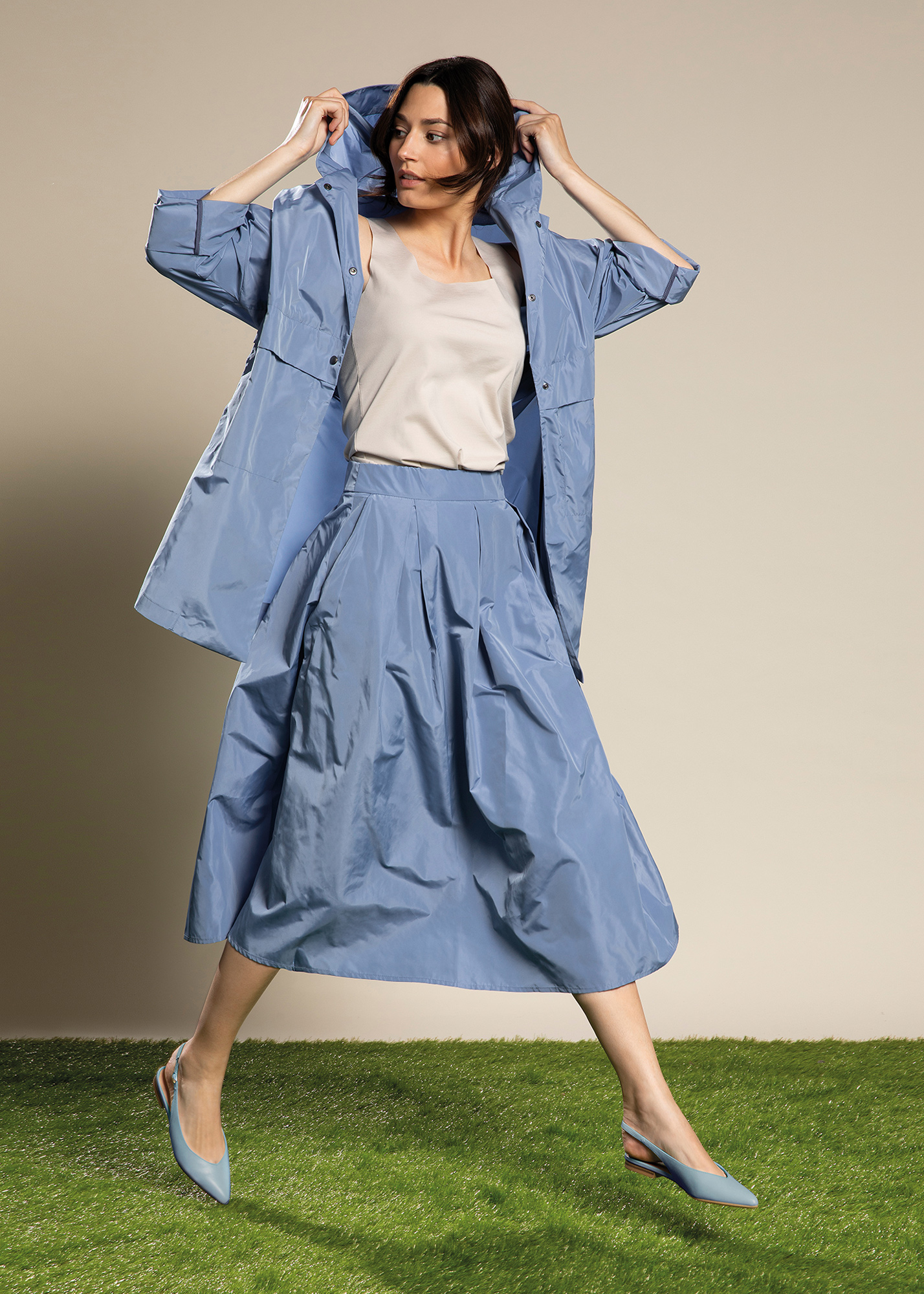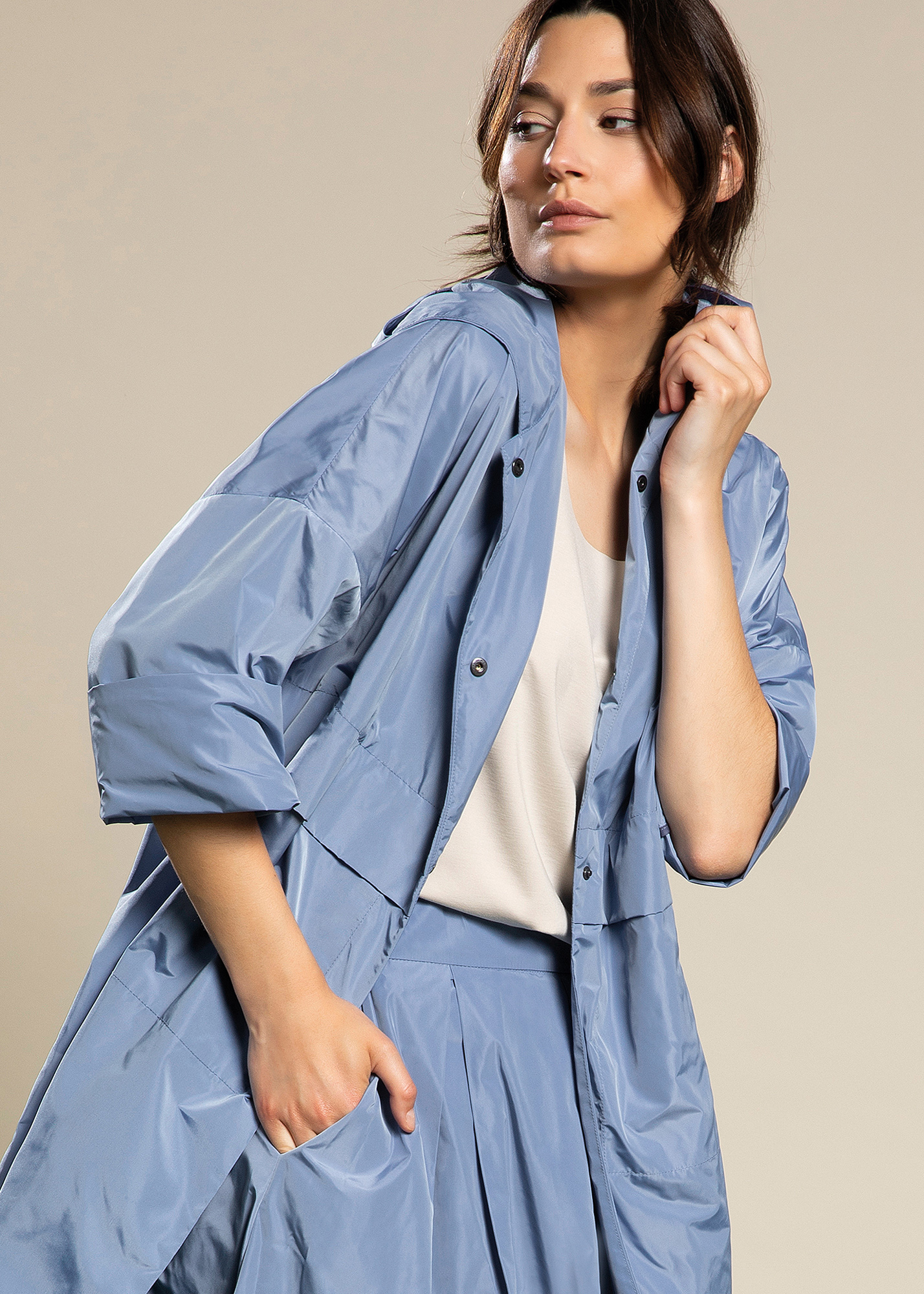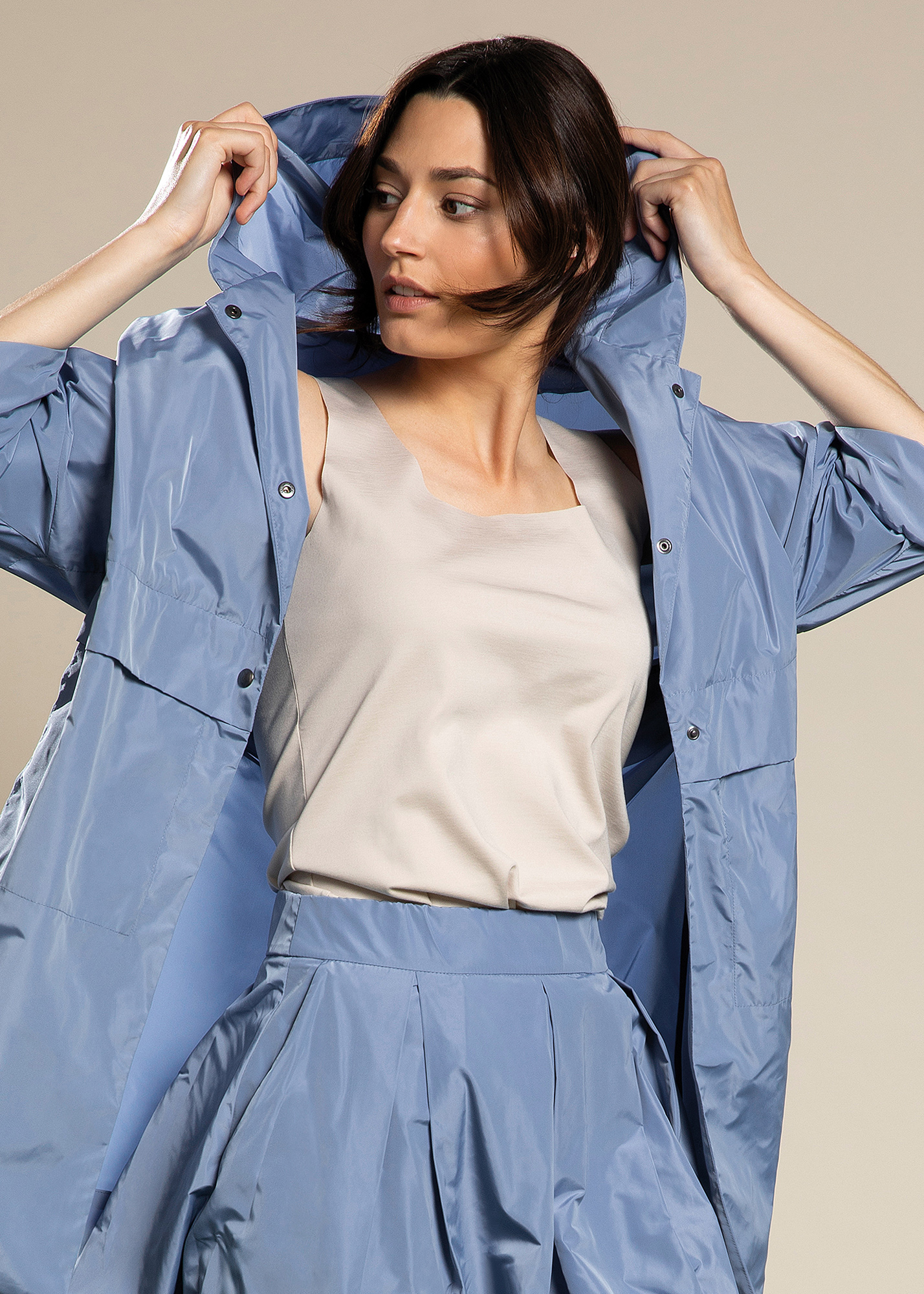 Impermeabile con cappuccio in taffetas