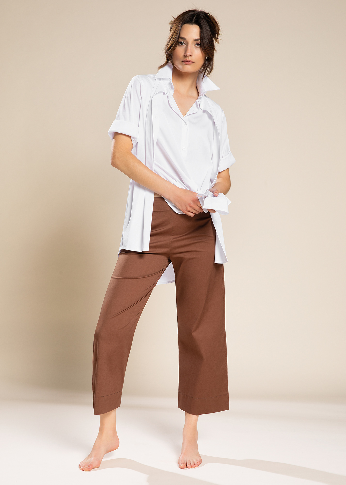Pantalone gamba larga in popeline