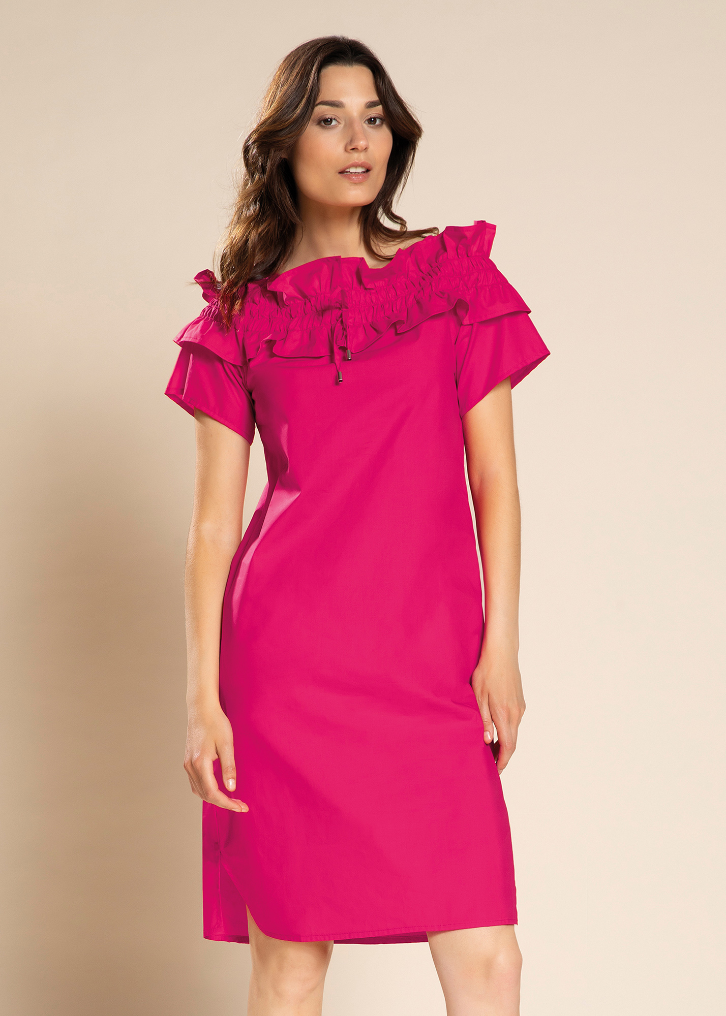 Abito con voulant in popeline