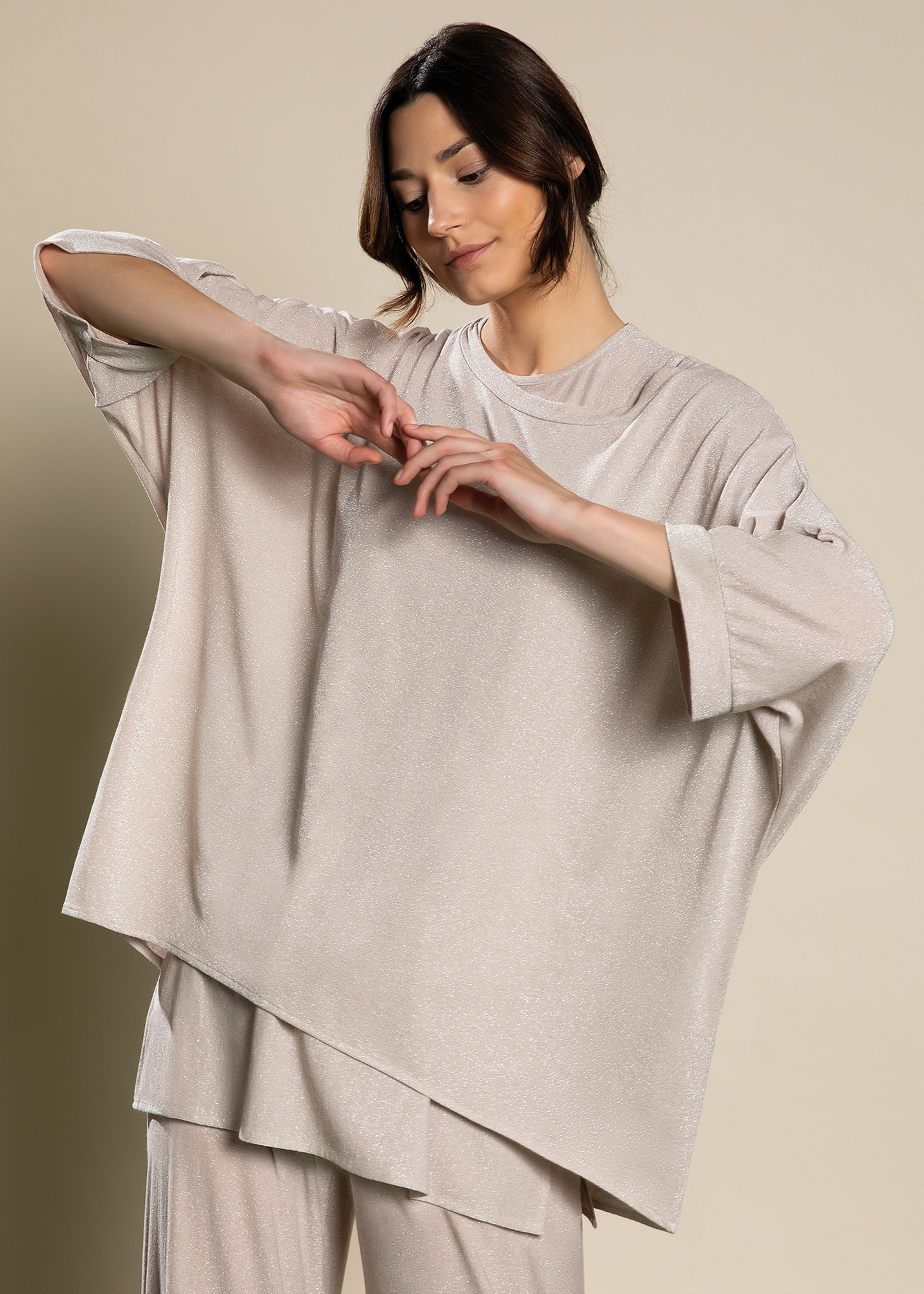 Blusa over lurex in maglina