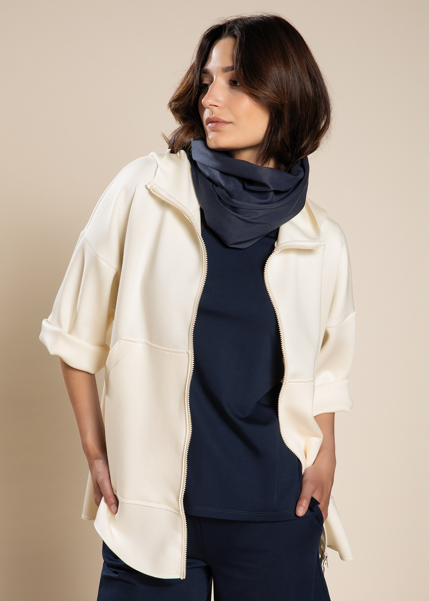 Giacca girocollo in maglia calata