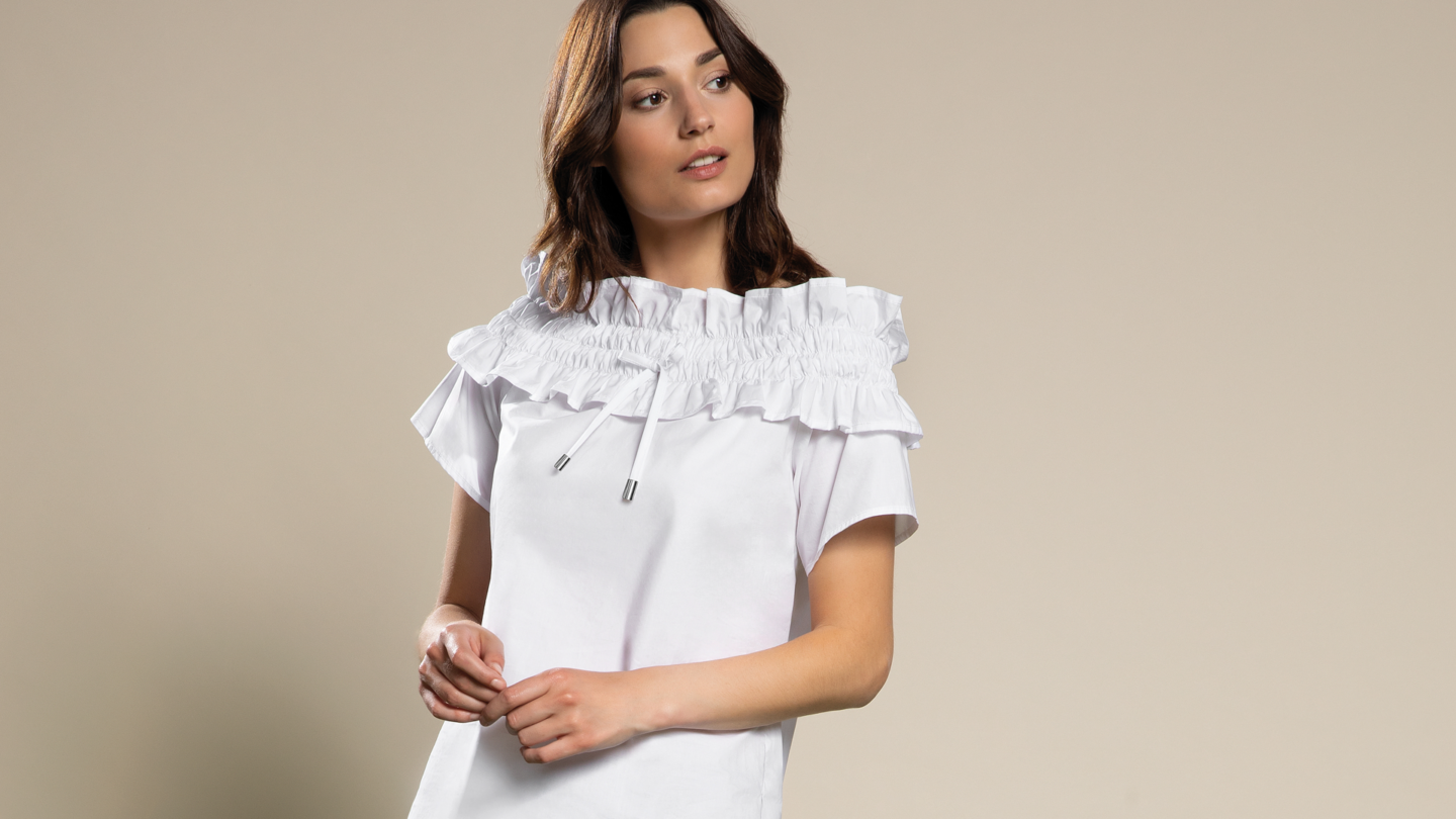 Camicia con voulant in popeline